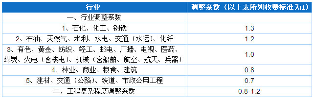 3、根據行業特點和各行業內部不同類別工程的複雜程度,計算谘詢費用時可分別乘以行業調整係數和工程複雜程度調整係數(見下表)。